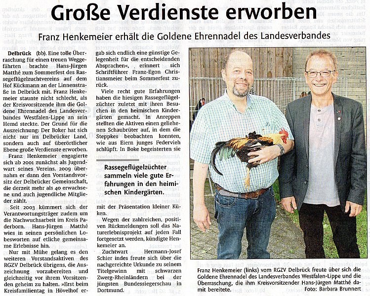 Sommerfest-06.08.2016 auf dem Hof Kückmann mit Tierbesprechung und Ehrung unseres 1. Vorsitzenden Franz Henkemeier mit der Goldenen Ehrennadel des Landesverbandes.
